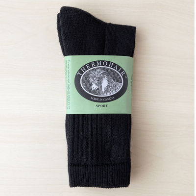 アンゴラヤギの子ヤギから刈られる毛「キッドモヘア」を使ったカナダ製の暖かい靴下。