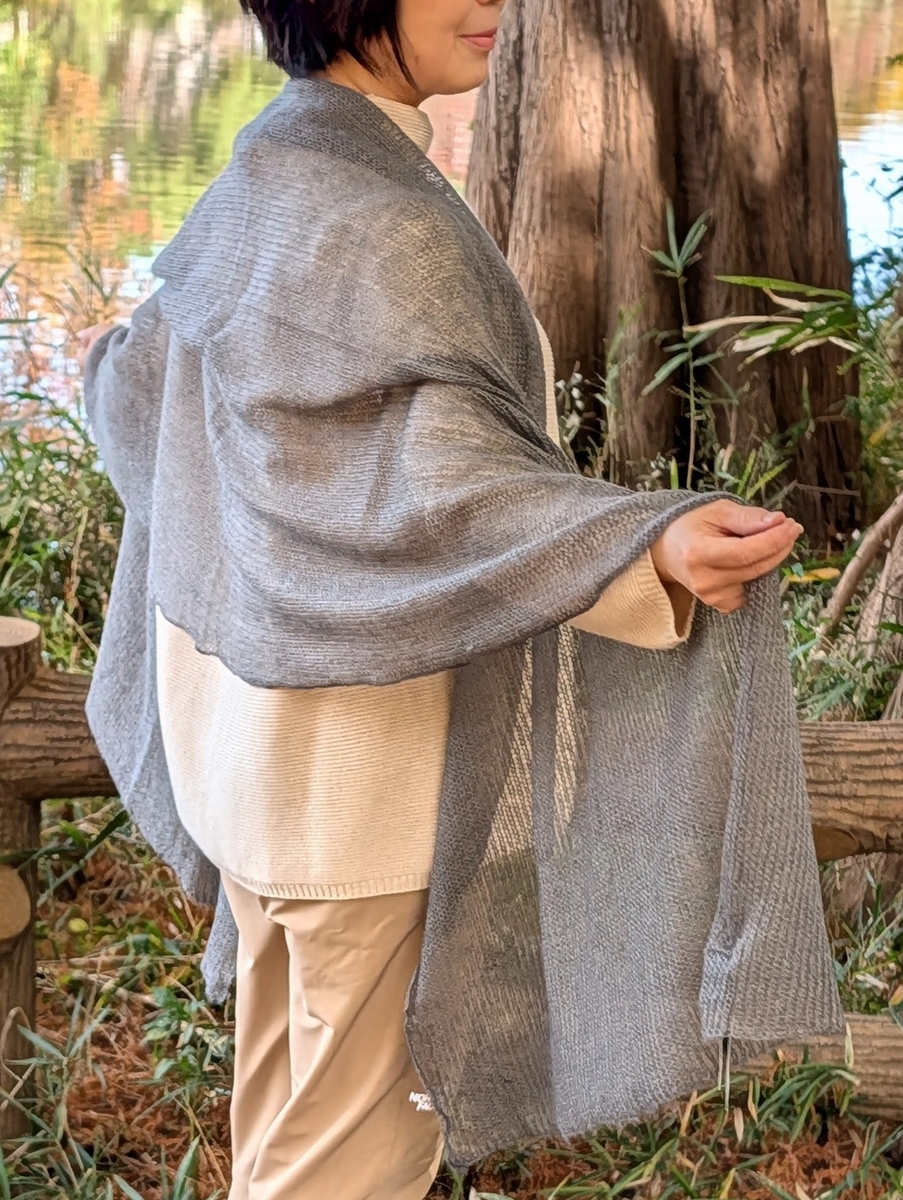 軽くて柔らかいストールは、マフラーのように首に巻いたり、ふわっと肩に羽織ったり、ひざ掛けや少し肌寒い日のブランケットにも。