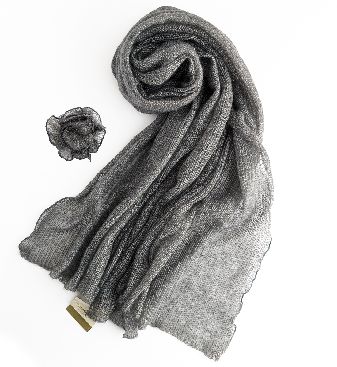 L'Angelaine キッドモヘア シルク ストール L グレイ